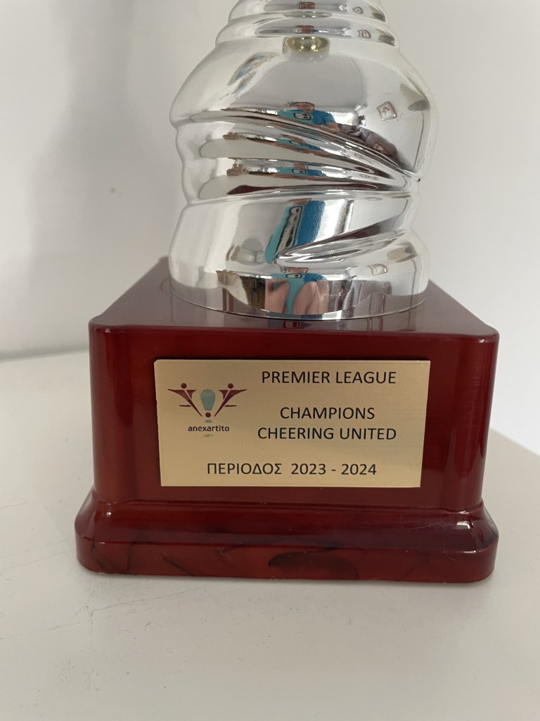 Today, CHEERing’s youth football team, CHEERing Utd., won the Premier League trophy for finishing first in the Anexartito League, Greece’s top non professional soccer league.